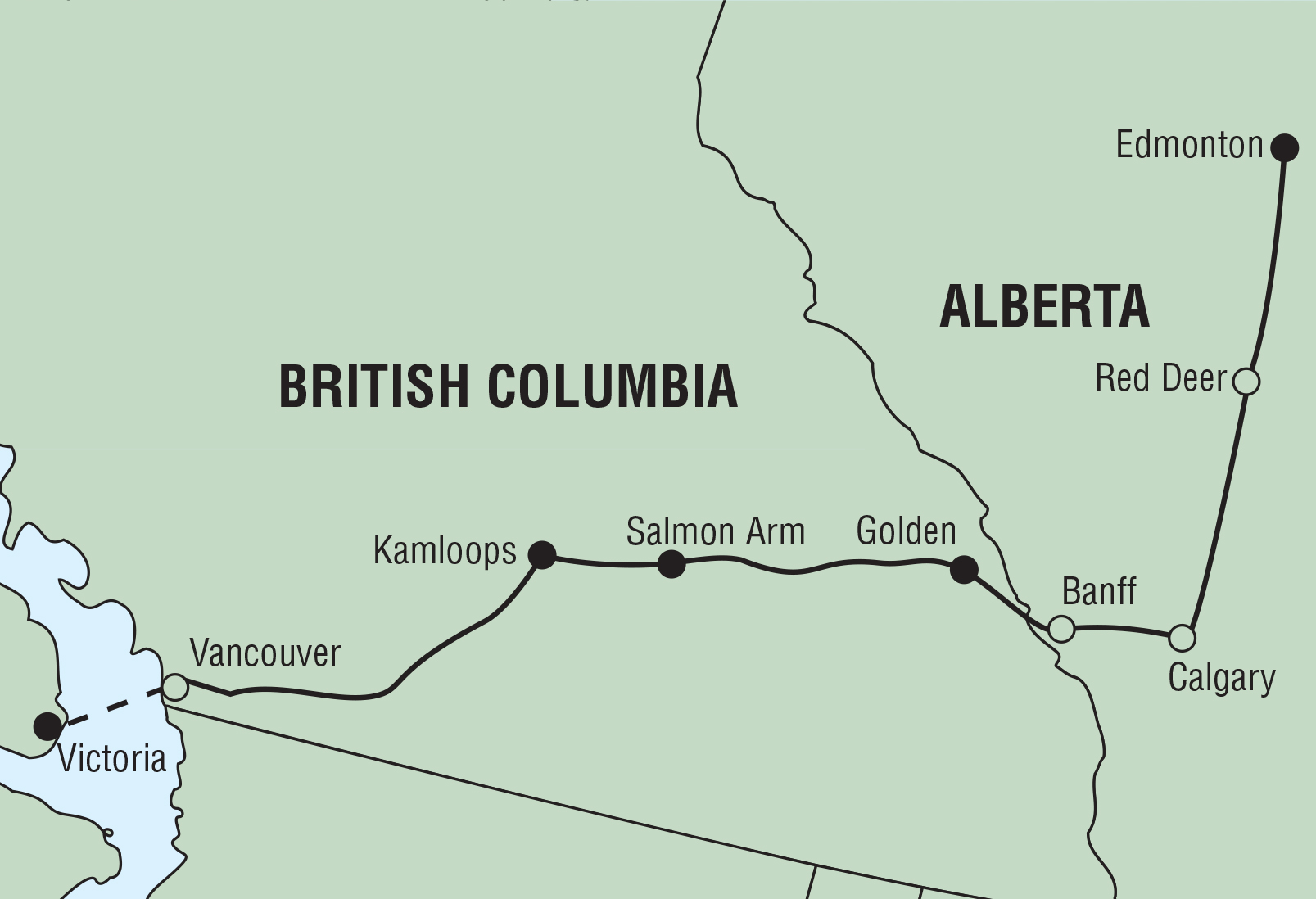 DEPARTURE: Edmonton North 7:00 am | Edmonton South 7:15 am | Red Deer 9:00 am | Calgary North 11:00 am | Calgary West 12:30 pm